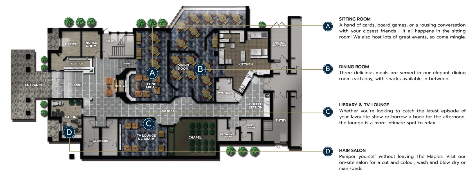 At The Maples, independence meets luxury as you choose how to spend your time, knowing exceptional amenities and caring support are always within reach. This is more than just living—it’s experiencing the fullness of life in a community designed for you.